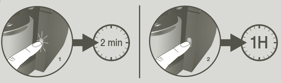 • Започнете цикъла (без кафе). След 2 минути спрете цикъла ръчно. Оставете кафе машината за час.