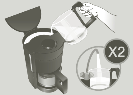 • Изсипете разтвора в резервоара за вода (без кафе).